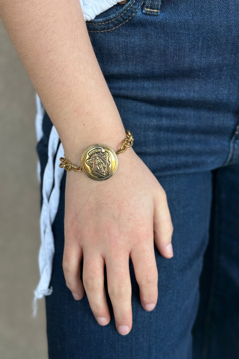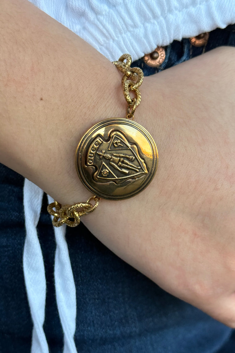 Authentic vintage logo charm repurposed into the most beautiful bold bracelet.