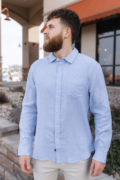 Lightweight cotton, long sleeve, button-down shirt featuring relaxed fit and patch pocket at chest. Super soft, breathable cotton fabric mixed with a relaxed body shape makes the Wyatt the perfect Southern California inspired button-down.