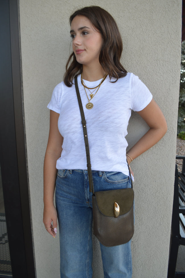 The Perry Leather/Suede Crossbody Bag offers a compact design ideal for carrying all your essentials with ease. Its adjustable strap ensures a comfortable fit, making it a practical and stylish choice for everyday use.