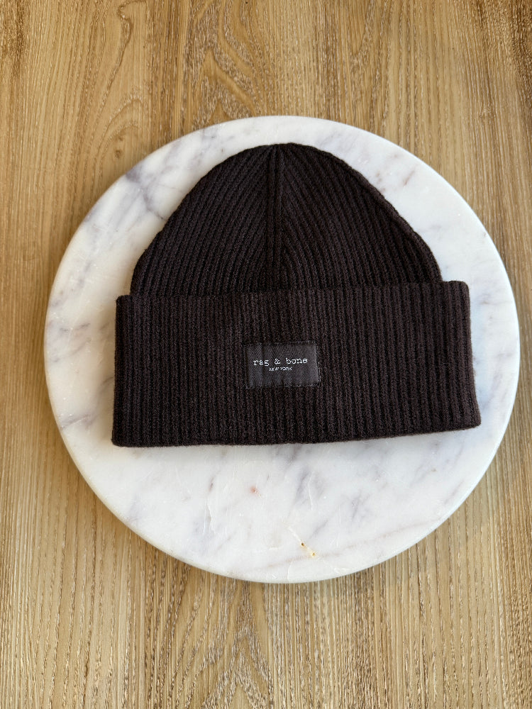 A cold-weather staple. Knit from a soft, extra-fine merino wool blend, this beanie hat is designed for a snug fit with a folded brim featuring a Rag & Bone logo patch at the center.
