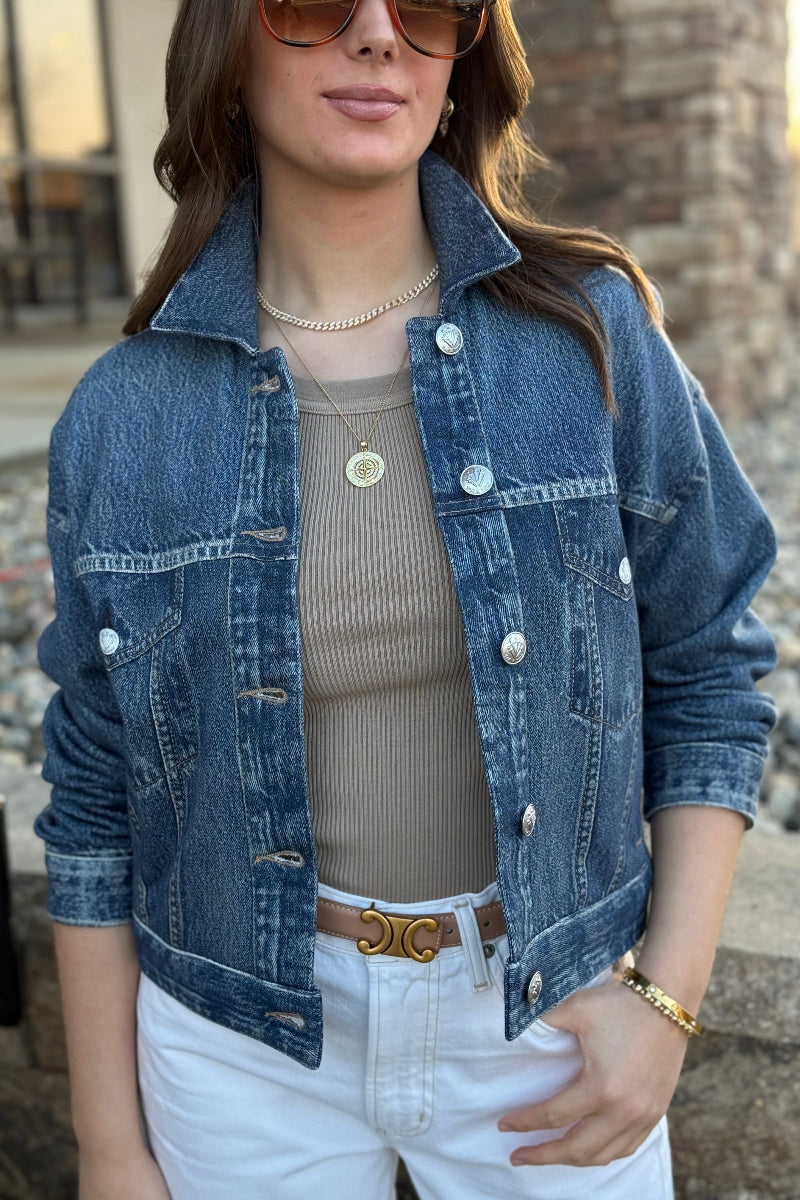 Miramar is a revolutionary printing technique, makes any material look like denim. This trucker jacket is cut and sewn from cotton terry cloth that's ultra-soft on the inside and printed on the outside to look like your favorite denim jacket. Featuring metal buttons, the relaxed, slightly cropped style further achieves its comfortable fit and feel with pockets and other details digitally printed on the fabric.