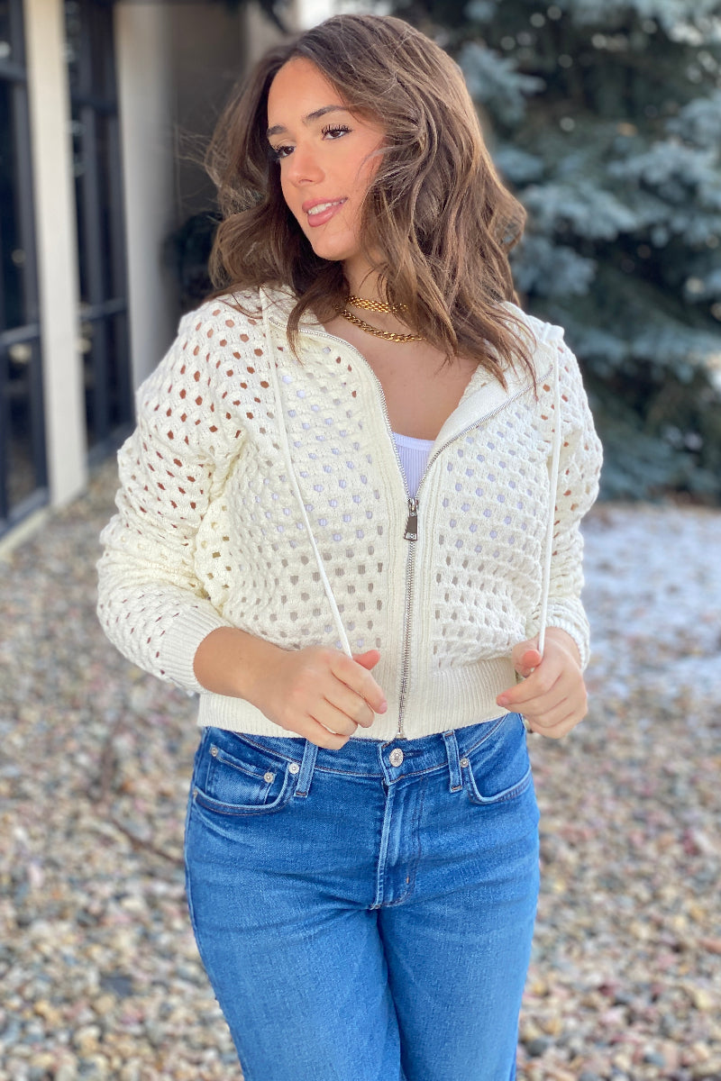The open knit, zip front and hood give the Nina Cardigan a modern casual vibe.