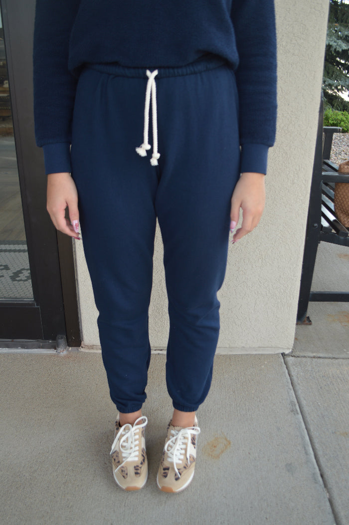 The johnny is made with the signature buttery soft french terry cotton. This ankle length jogger fits true-to-size and the drawstring is hidden so you won't have any strings dangling.