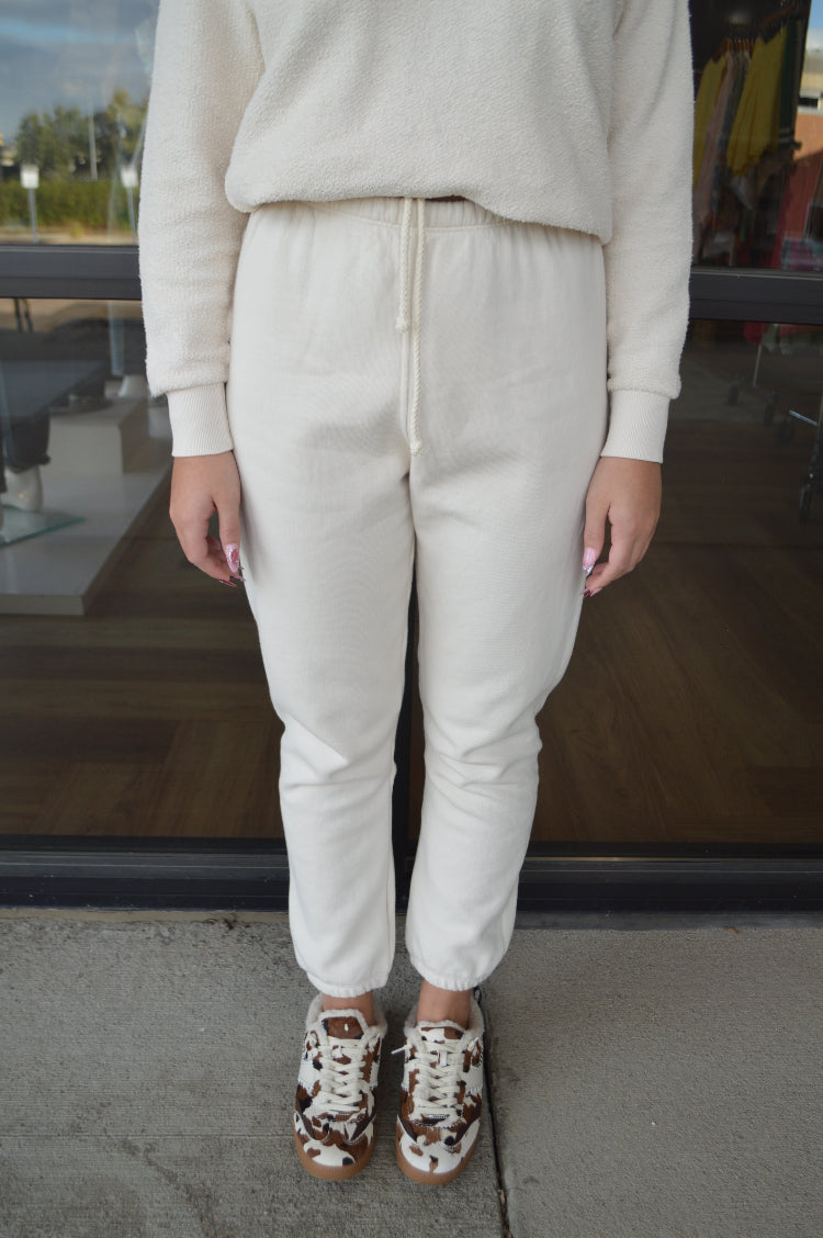 a little high waisted with a simple hidden drawcord. designed to lounge in, play in, and work in. you never take these off. ever.