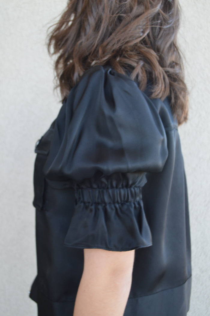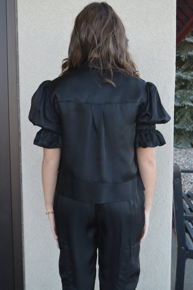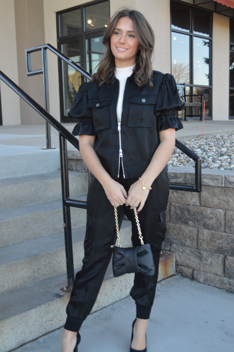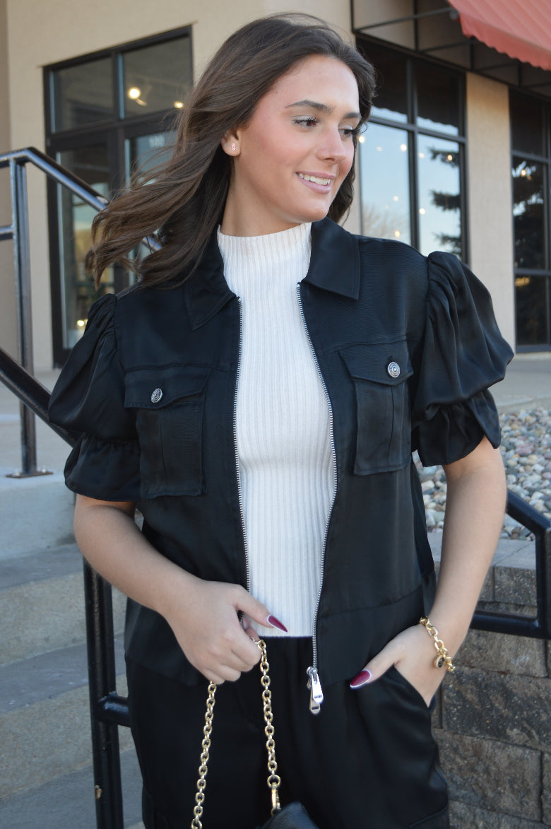 Experience comfort and style with the Holly Jacket. This short-sleeved jacket features a collared neckline and sleek black design, perfect for any occasion. Made with cupro fabric and complete with an exposed zipper and patch pockets, it's the perfect combination of fashion and functionality.