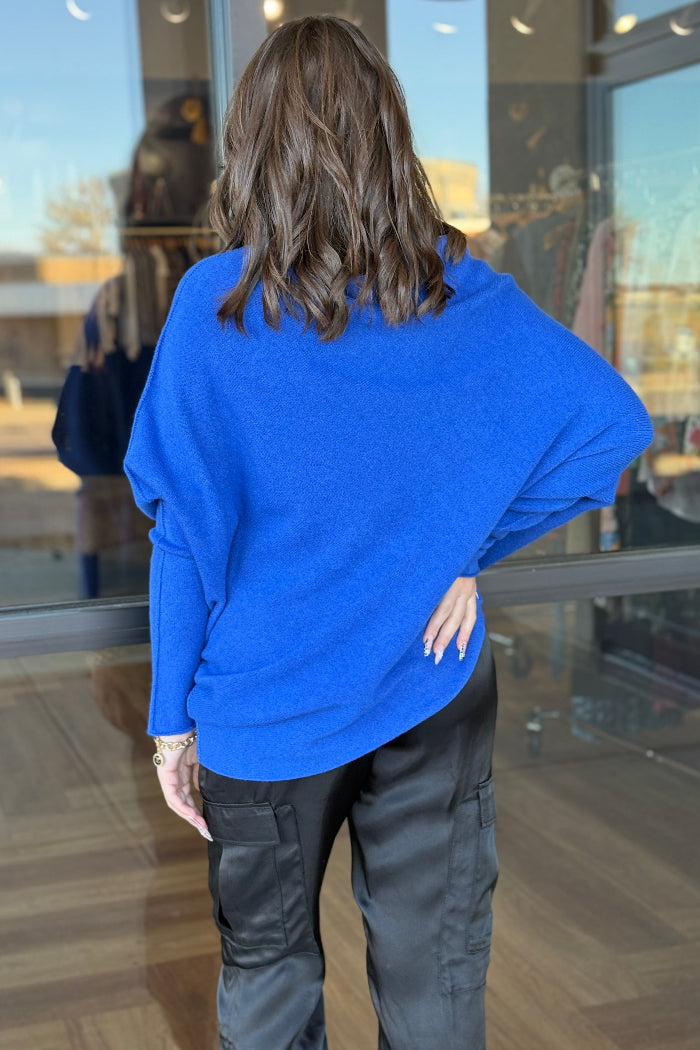 Upgrade your wardrobe with our Asymmetrical Sweater. Made with luxurious, lightweight Italian viscose, this long-sleeved top offers breathability and comfort. This silhouette offers a neckline that can be worn on or off-the-shoulder and has an asymmetrical hemline that is ultra chic and flattering. Transition seamlessly from day to night in this versatile piece.