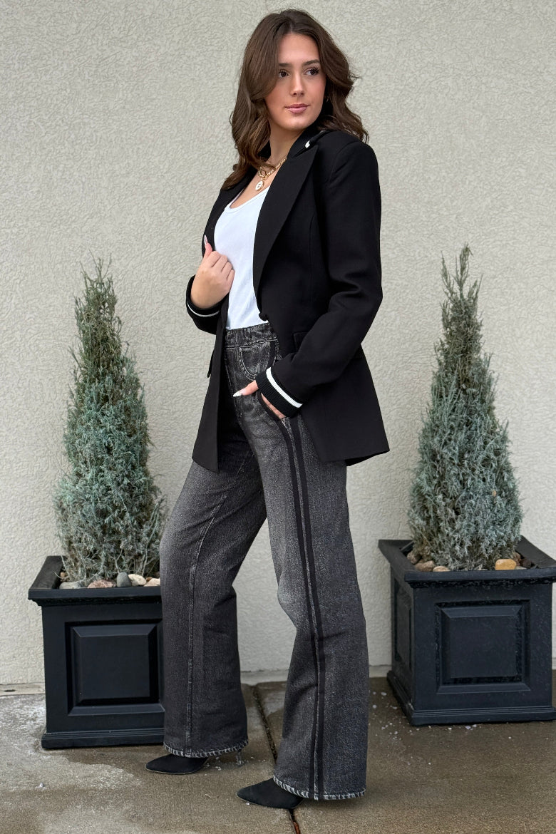 Miramar is a revolutionary printing technique, makes any material look like denim. These wide-leg track pants are cut and sewn from cotton terry cloth that's ultra-soft on the inside and printed on the outside to look like your favorite jeans. Featuring a pull-on elastic waistband and hidden side-seam pockets, the mid-rise style further achieves its comfortable fit and feel with its sporty side stripes, other pockets, and denim details digitally printed on the fabric.