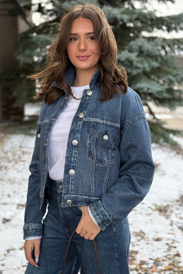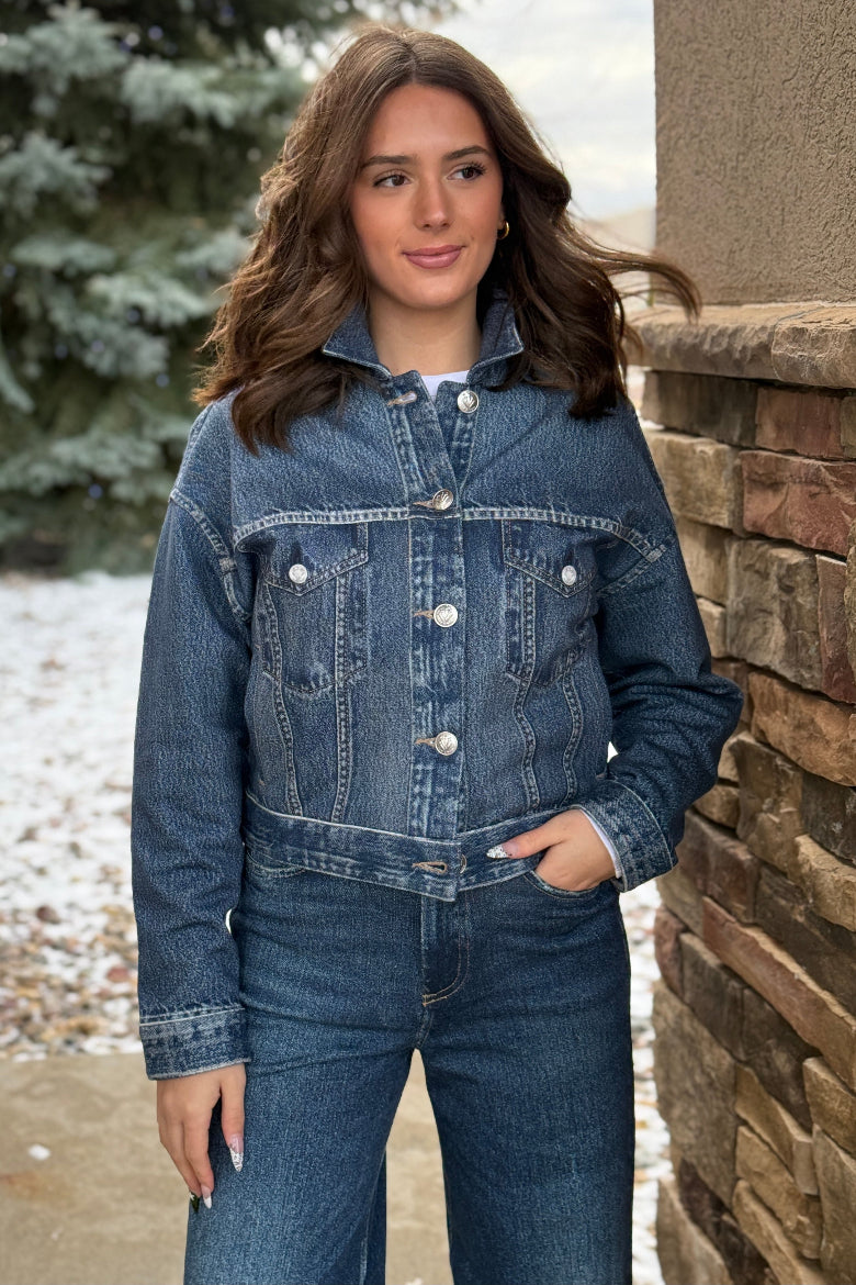 Miramar is a revolutionary printing technique, makes any material look like denim. This trucker jacket is cut and sewn from cotton terry cloth that's ultra-soft on the inside and printed on the outside to look like your favorite denim jacket. Featuring metal buttons, the relaxed, slightly cropped style further achieves its comfortable fit and feel with pockets and other details digitally printed on the fabric.