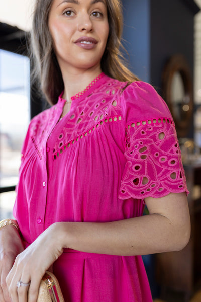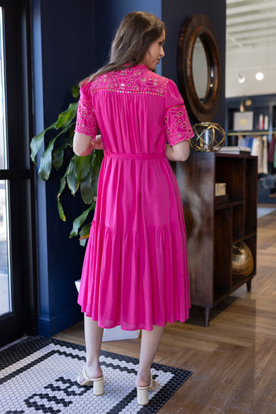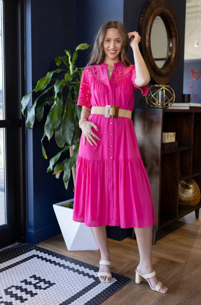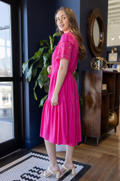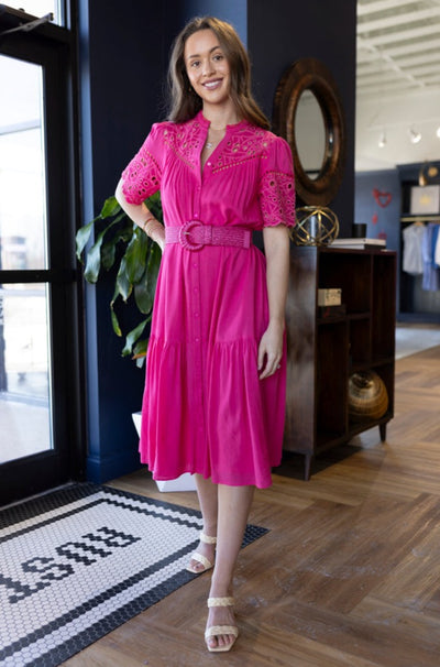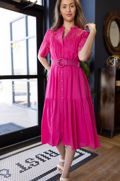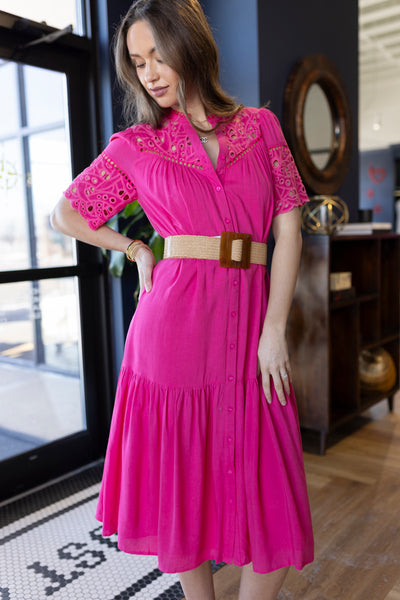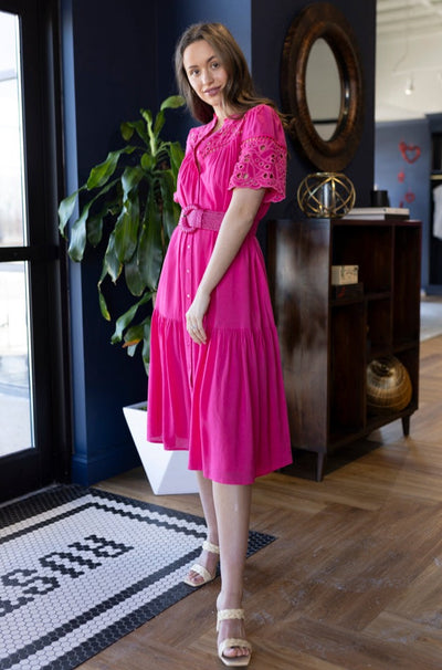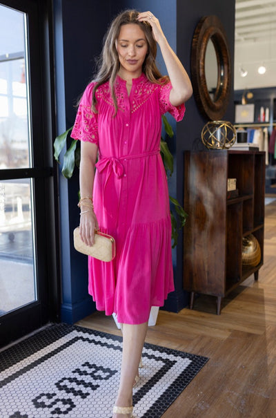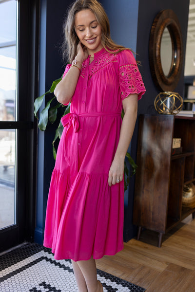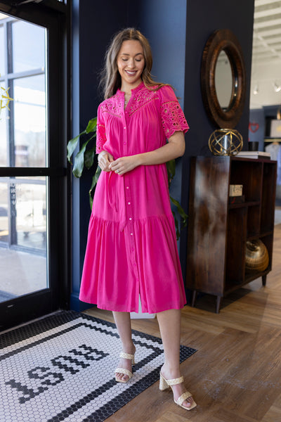 With eyelet yoke and sleeves, the Jayla midi dress is the perfect spring dress for any occasion.