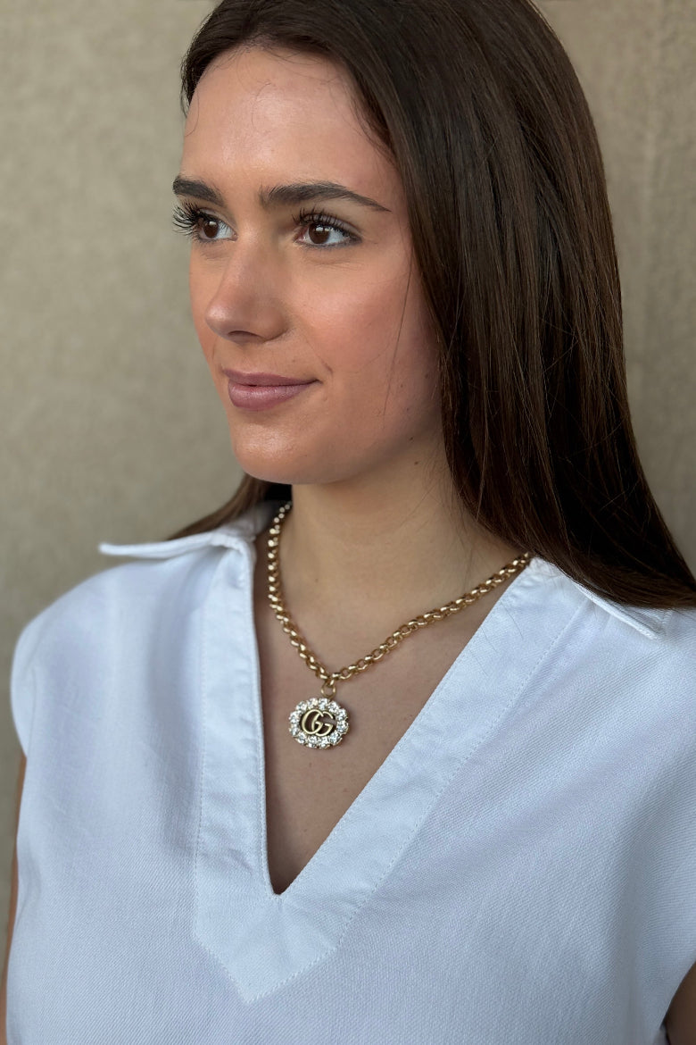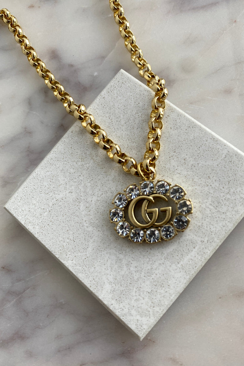 Authentic vintage logo charm repurposed into the most beautiful bold necklace.