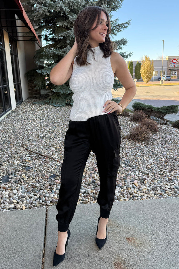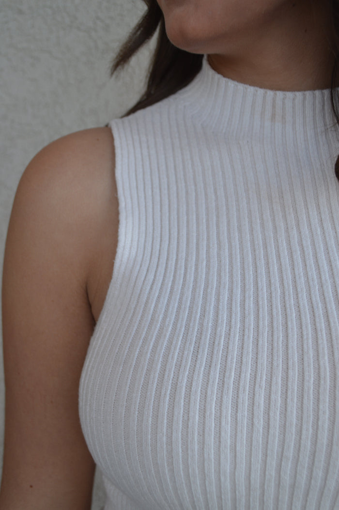 This Italian viscose ribbed sleeveless shell is made of high-quality yarn and features a comfortable fit and a chic look. Its lightweight and stretchy fabric ensures a flattering silhouette and optimal breathability. Perfect for day-to-night style, this sweater will become a go-to for effortless elegance.