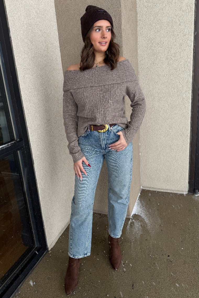 The Gigi Sweater is a super-soft knit with a relaxed fit. It has a folded neckline that can be worn off the shoulder or on as a cowl neck. Its so comfortable, you'll want to wear it every day.