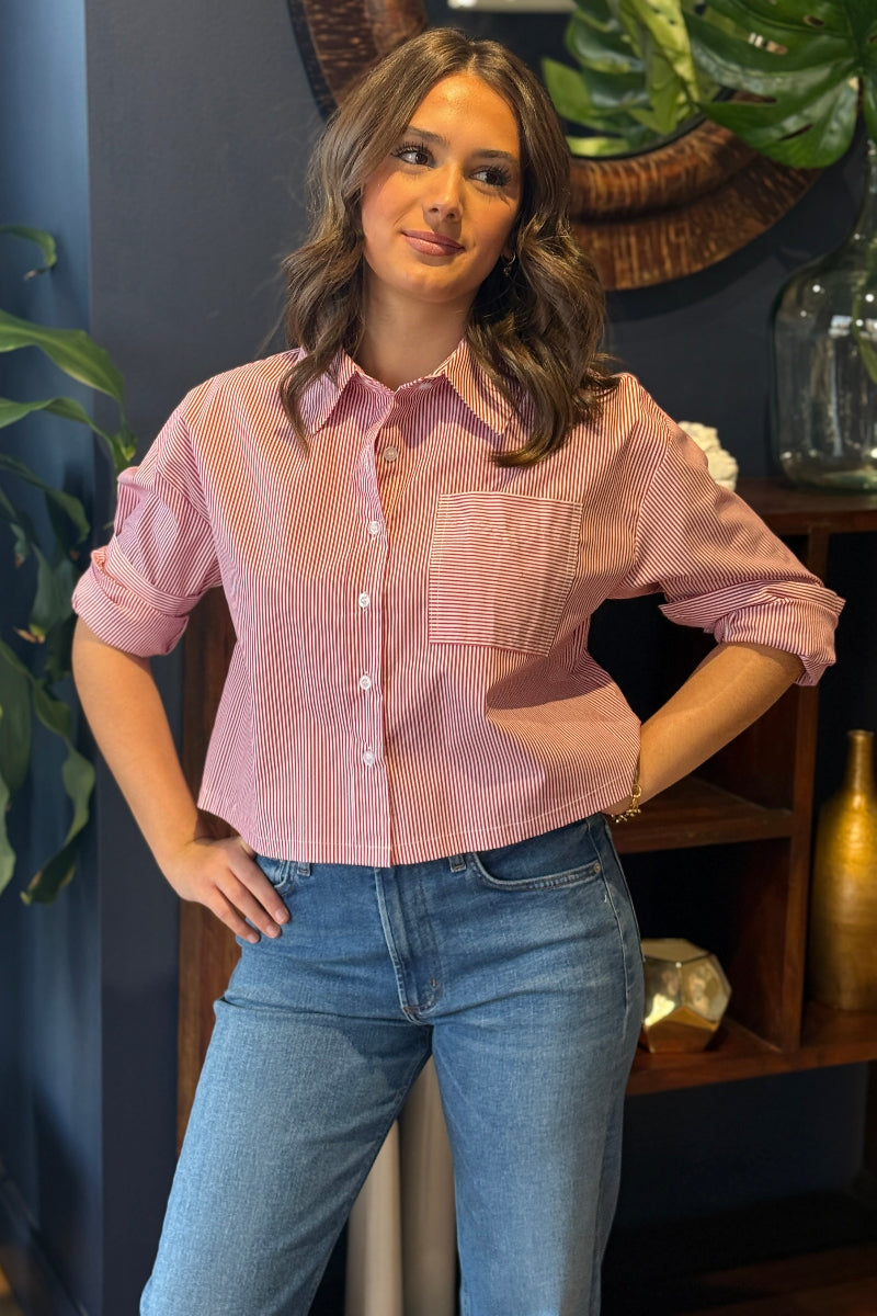 The Jenny is a modern take on the classic button-down. Crafted from luxe cotton poplin with stretch, this shirt has a classic silhouette and a shorter hem.
