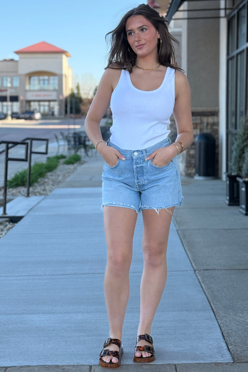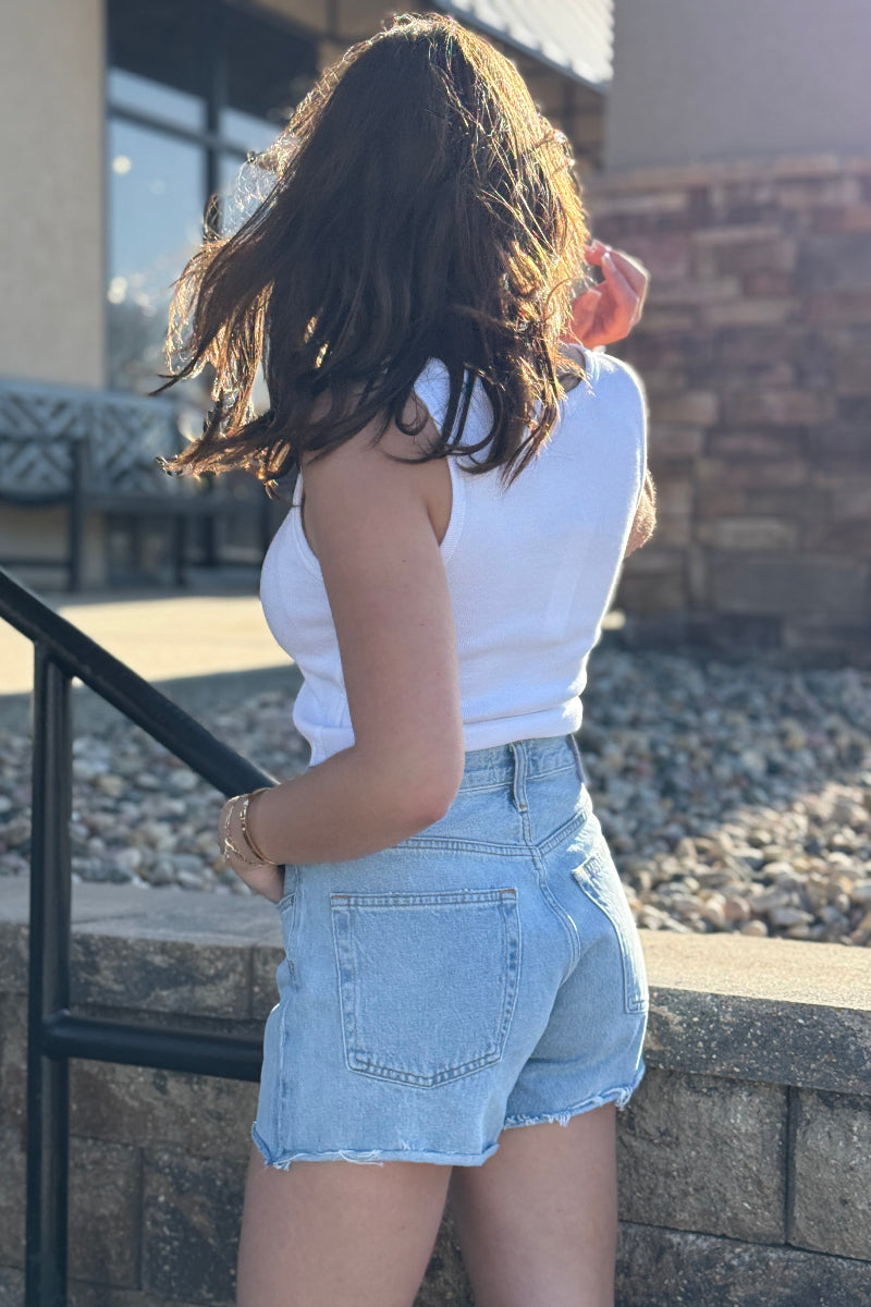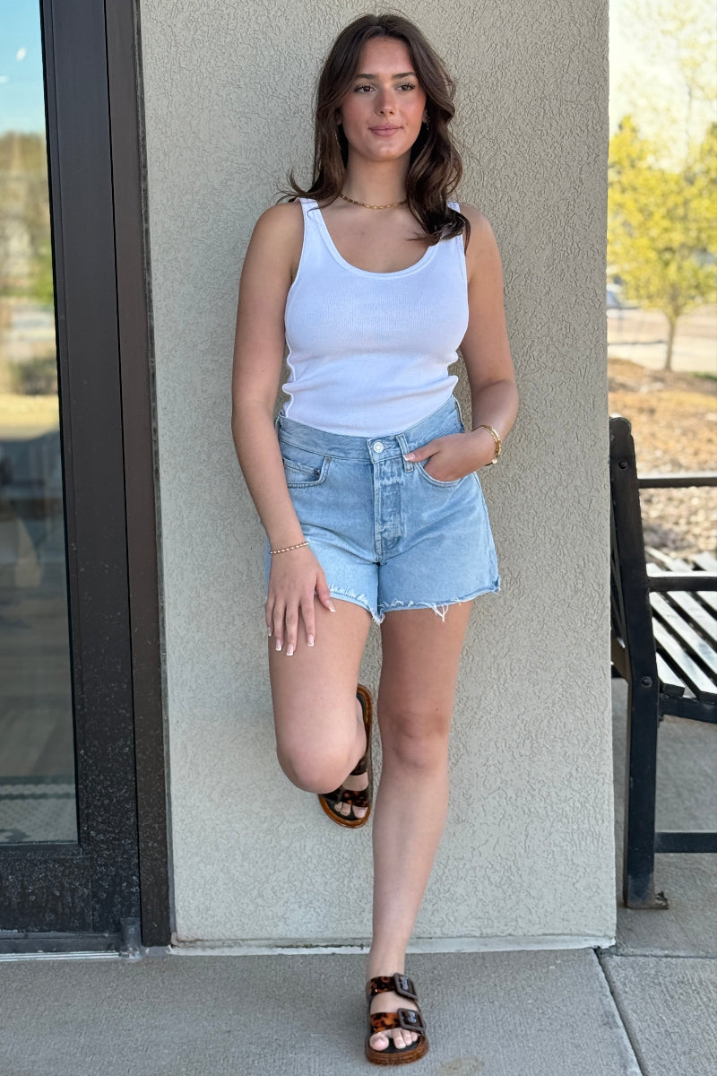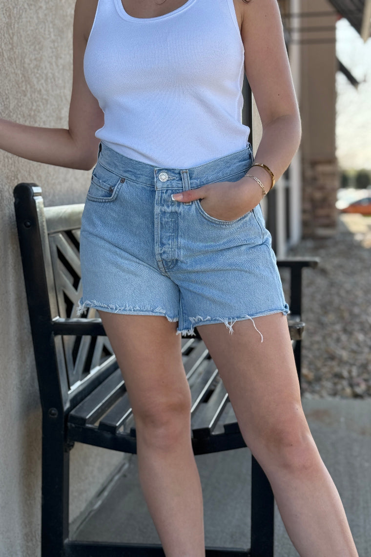 The Parker Long reimagines the iconic jean short with a slightly longer inseam and a high-rise waist for an easy, relaxed fit. Rendered in a light vintage indigo wash, it channels the look of true heritage denim with a soft, sun-faded feel. Crafted from rigid non stretch 100% regenerative cotton denim with a soft hand, it maintains a crisp structure while offering all-day wearability. Simple yet elevated, it pairs effortlessly with everything from casual tanks to polished tops.