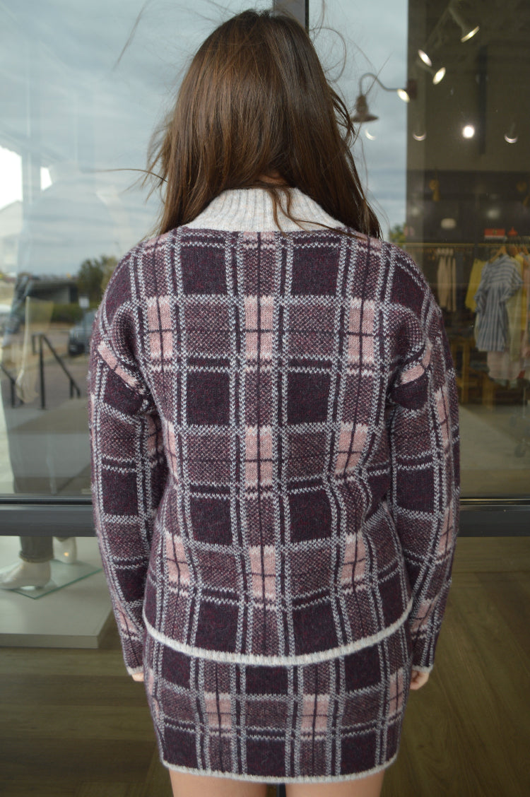 The Ashley Sweater is made from a super soft, melange knit. It features an all-over plaid jacquard, with a solid mock neck and tipped edge.