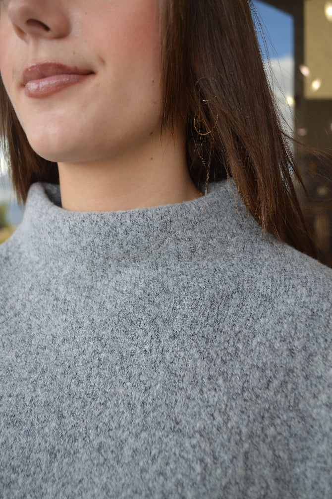 The Callie Low Mock Neck Sweater features a soft heathered yarn and a refined high crew neckline that offers warmth and style without the bulk of a turtleneck. Its versatile design combines comfort with a polished look, making it ideal for layering or wearing on its own throughout cooler seasons.