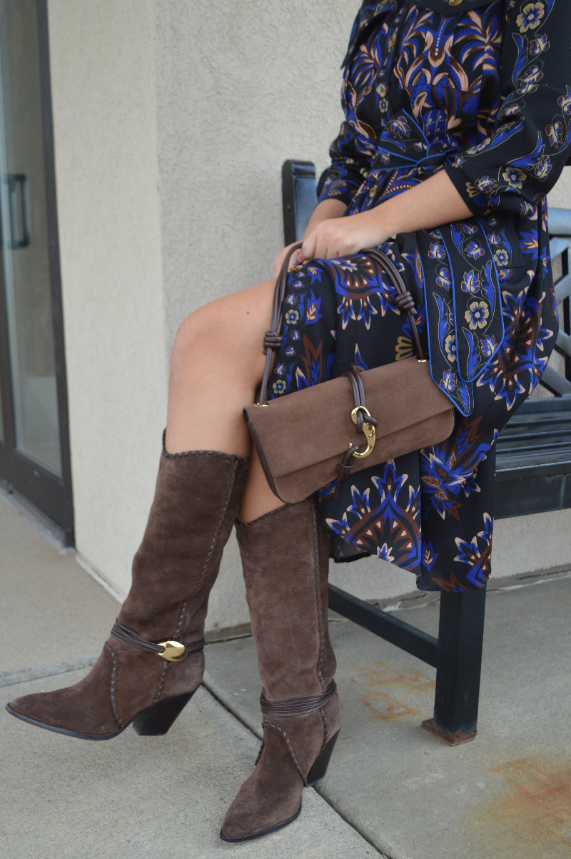 JODY is western-inspired and ready for everyday wear. This knee-high boot’s traditional details, like a stacked block heel and pointed toe, are elevated with a gold metal accent. Style her neutral suede colorways with jeans on the weekend and midi skirts during the week.
