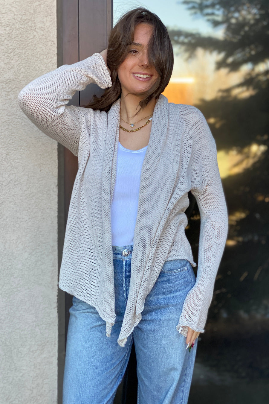 Knit from a soft, ropey and breathable cotton blend yarn, this versatile cardigan is a must-have. The beauty of this comfy cardi sweater is created by the long ribbing details on the hem and cuffs, creating a slimming effect. The longer length makes it perfect for layering.
