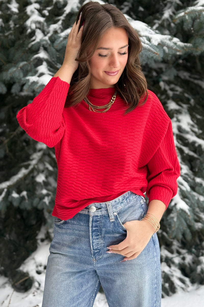 The Gianna features a textured rib, organic hemline, and a dolman sleeve.  The shape is ultra flattering and pairs easily with denim our dressed up with a pair of pants and a heel.