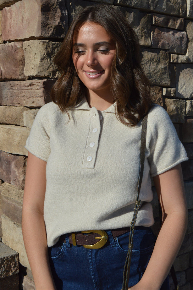 Spun from exceptionally soft yarn, the Gina is a comfy take on the classic polo—complete with raglan sleeve, a classic fit, and rolled hem at the waist and arm opening. Pair with jeans for a relaxed look.