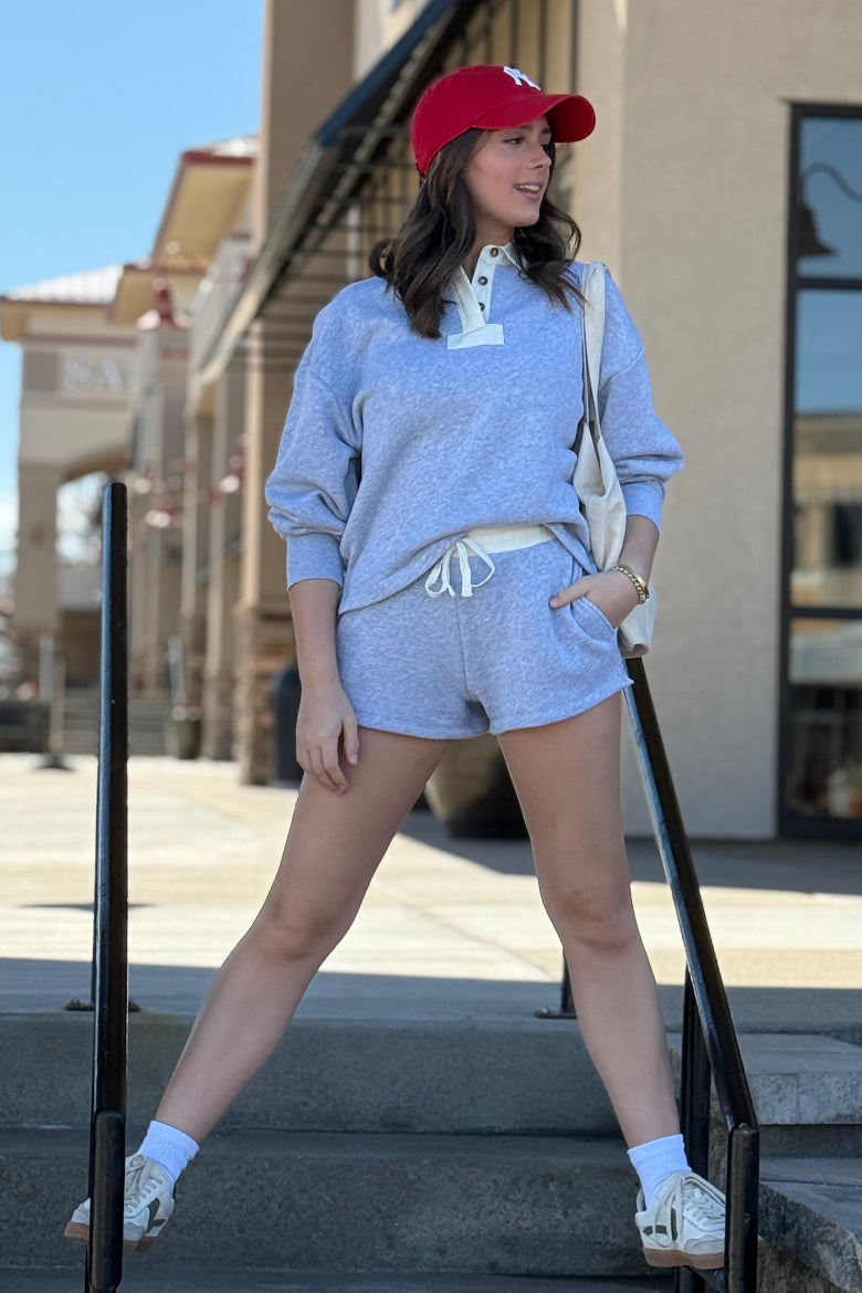 Vintage varsity. These terry shorts channel collegiate cool. A contrast elastic waist creates a subtle shift in texture from its cotton-blend loop-terry cloth that's washed for a soft and worn-in feel. Relaxed fit, they are the ultimate in comfort.